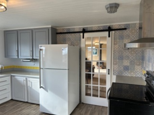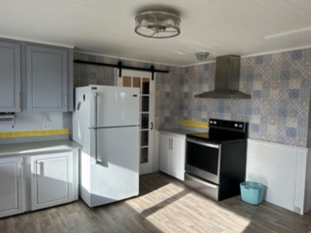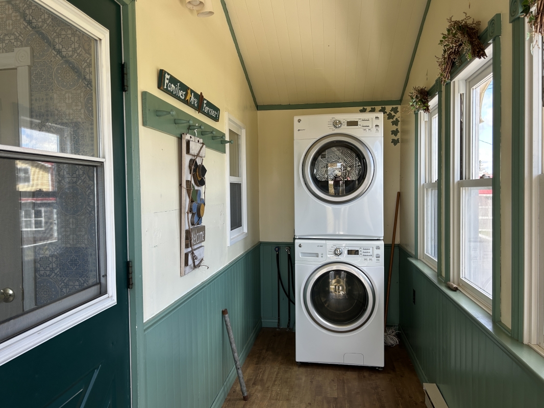 Appliances: Fridge / Stove / Dishwasher / Washer / Dryer (Stackable) / Wood Stove/ all remaining wood